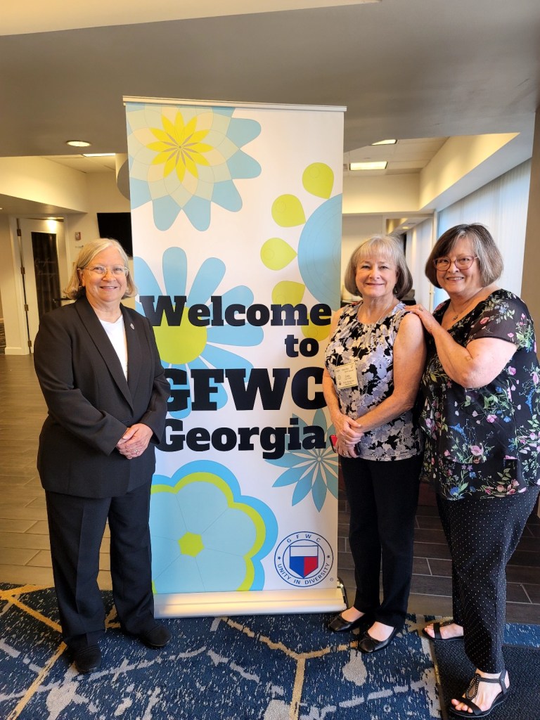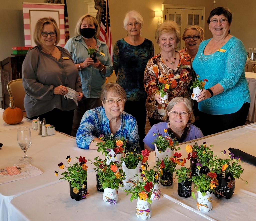 Pictured below are: art bras created by our club members for the GFWC Georgia NW District “Bra Ha Ha” bringing awareness to Breast Cancer Awareness Month; club members filling Santa’s list for a military family. Hosting GFWC Georgia convention; planting a tree with the Marietta Middle School Kiwana’s Bulders Club at the site of our old clubhouse; sewing teddy bear hospital gowns for a Make-A-Wish collaborative project; walking in the March of Dimes, March for Babies; creating recycled material planters that were delivered to shut-in families; making Tootsie Pop snowmen for a Well Star Living fundraiser.
